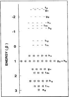 Рис.16 Діаграма хюккелівських орбіталей молекули С60