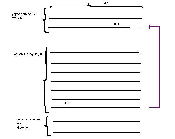 После вычислений количества работников в отделе мы получили: управленческие функции-2 человека, основные- 7 человек, вспомогательные- 2 человека. Но один сотрудник, выполняющий основные функции и сотрудник, выполняющий управленческие функции загружены не полностью. В целях усовершенствования регламента работ необходимо объединить их функции, а именно перенести часть основных на руководство отделом, тем самым сократив количество сотрудников на одного человека и получив экономию в заработной плате.