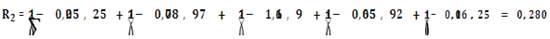 Розрахуємо показник R, що характеризує ступінь відповідності фактичних значень фінансових показників кожного підприємства, що беруть участь в оцінці, показникам еталонного підприємства. Формула має вигляд: