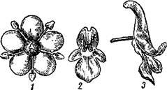 Рис. 2. Цветок: 1- актиноморфный; 2 - зигоморфный в одной плоскости; 3- асимметричный.