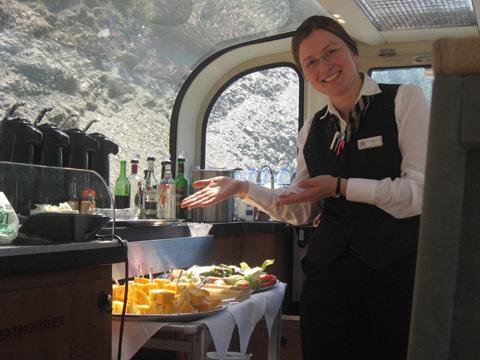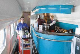 В поезде предусмотрено два класса — бизнес и туристический. Есть вагон с бистро и кухней, которые могут обеспечить горячим питание всех пассажиров бизнес-класса и до 250 путешествующих туристическим классом. В вагоне имеются места со столами и стульями, а также два высоких стола, за которыми пассажиры могут принимать пищу стоя. Обслуживание пассажиров бизнес-класса осуществляется с помощью подносов на передвижных тележках. В туристическом классе пакеты с питанием распределяются по сиденьям до отправления поезда, а остальные товары развозятся пассажирам на тележках.