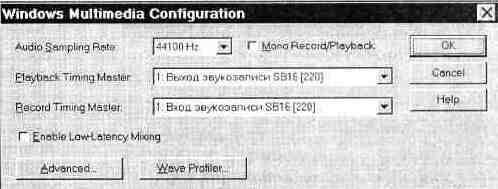 вызывает окно диалога Advanced Windows Multimedia Configuration,