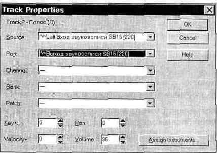 (полифония) определяется максимальное число звуковых сообщений, звучащих в течение одного интервала, равного 1/4 с. Чем больше полифония, тем больше будет загружен процессор и больше будет израсходовано оперативной памяти. Если в каком-то четвертьсекундном интервале окажется больше звуковых сообщений, чем задано, то, подобно MIDI-синтезатору, избыточные голоса будут «урезаться».