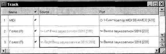 — это список MIDI-устройств, на которые будет осуществляться вывод MIDI-информации (воспроизведение). Следует заметить, что одновременно можно выбрать несколько устройств, и все они станут доступными для ввода/вывода MIDI-информации. На рис. 4.1 показано, что в числе устройств вывода выбраны синтезатор на основе микросхемы EMU8000 и FM-синтезатор на основе OPL3.