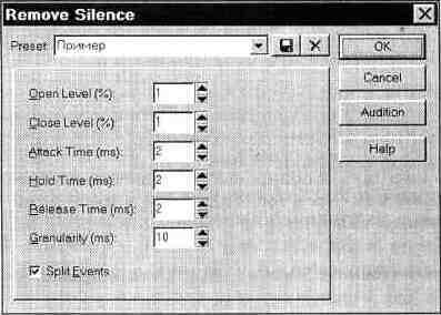 нужно подбирать опытным путем. Значения их, заданные нами, вы уже видели на рис, 4.10, а результат применения Remove Silence