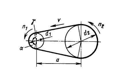 Определяем угол обхвата на ведущем шкиве α1,