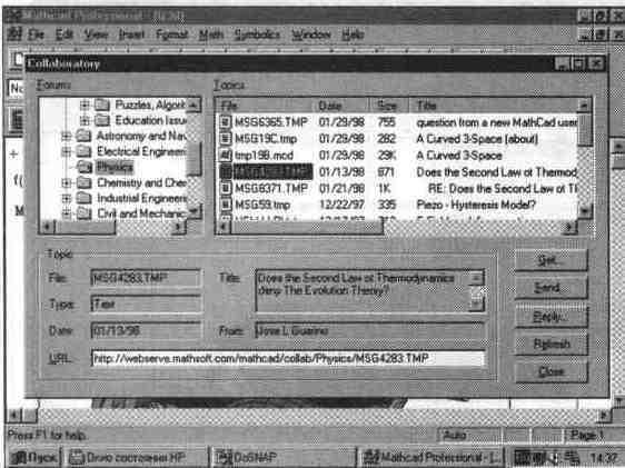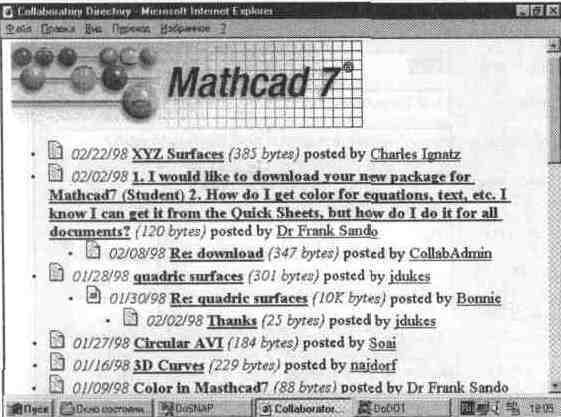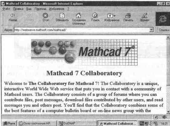 Понять организацию совместных работ в системе MathCAD легче всего, ознакомившись с Web-страницей фирмы MathSoft, имеющей адрес www.