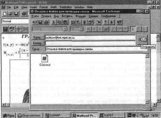В настоящее время ни одна программная система не может претендовать на высокое место в рейтинге качества, если она не поддерживает работу с Internet. Система MathCAD 7. 0 PRO такую поддержку обеспечивает, она позволяет напрямую (т. е. непосредственно из ее среды) отправлять файлы своих документов по электронной почте. Более того, система предоставляет возможность ведения совместной работы над документами, в частности серьезными математическими проектами.