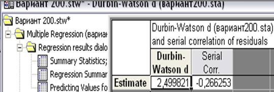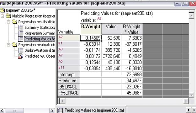 Коэффициент корреляции R=0,59719, т.е. меньше 0,7; следовательно получена средняя линейная связь между зависимой и независимыми переменными.