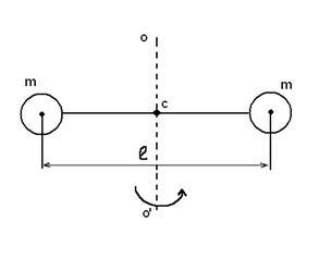 : Общий момент инерции, проходящий через центр масс системы (точка С) равен сумме моментов инерции двух материальных точек массой каждая и вращающихся вокруг оси на расстоянии .