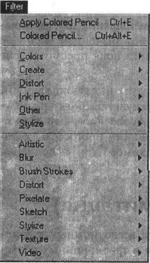 Все фильтры представлены в меню Filter (Фильтр) и разделены на 9 групп: