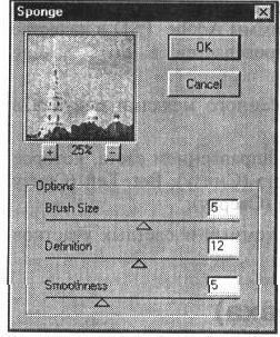 Фильтр Sponge (Губка) предназначен для имитации рисунка, выполненного с использованием в качестве кисти губки, смоченной в краске (рис. 12-15).