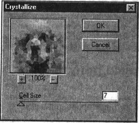 Значение поля Size (Размер) определяет в диапазоне от 1 до 12 размер растровой ячейки, а поля Contrast (Контраст) — уровень контраста в диапазоне от 0 до 50.