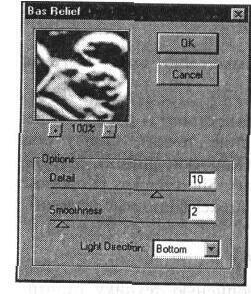 Фильтр Plaster (Гипс) используется для имитации плоских рельефов, получаемых из гипса или алебастра (рис. 12-45). Цветовая гамма строится из черного, серого и белого цветов.