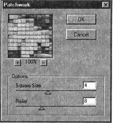 Фильтр Patchwork (Цветная плитка) служит для создания имитации изображения, составленного из плиток различного цвета (рис. 12-54).