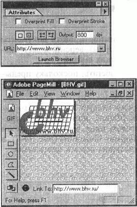Ссылка на URL-адрес создается в палитре Attributes (Атрибуты) (рис. 14-4). В поле URL вводится или выбирается из имеющегося списка необходимый адрес.