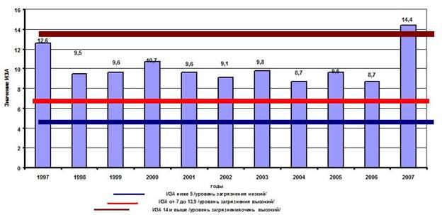 Рис.1. Изменение значений ИЗА г.Перми за период 1998-2007 гг.[5]