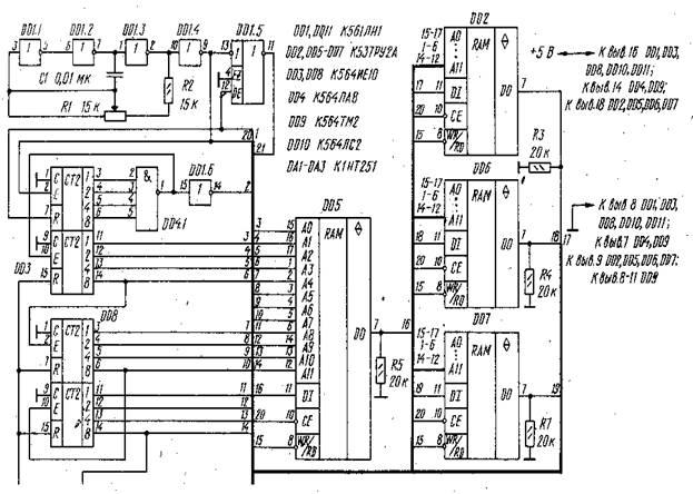 Рисунок 8 - Схема четырёхканального А.С.Э. на микро оперативной памяти.