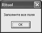 Если в процессе заполнения регистрации не были заполнены все текстовые поля или при занесении данных о покупателе на вкладке "Продать", то выводится сообщение: