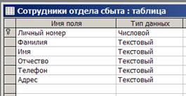 Рис. 3. Таблица «Сотрудники отдела сбыта» в режиме конструктора
