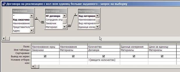 Рис. 8. Запрос «Договора на реализацию с кол-вом единиц больше заданного»