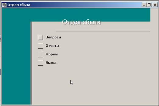Запуск базы данных осуществляется двойным щелчком мыши по файлу «Отдел сбыта.mdb». При запуске программы открывается главная кнопочная форма.