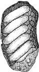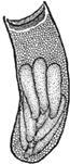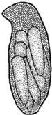 8. Кубышки саранчовых класса фитофилы имеют следующие отличительные признаки: кубышка представляет собой каплю застывшего секрета в которой находится два яйца. Она откладывается среди листового опада. В зависимости от места откладки форма разнообразна: неправильно-шаровидная, сдавленная с боков в форме сумки. Длина от 6мм до 10мм, диаметр 4.0-6.6мм.