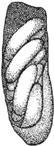 Ниже, в изогнутой части, помещается кладка яиц, окруженная мягким, прозрачным, коричнево-розовым, крупноячеистым секретом, который яиц не скрепляет. Стенки этой части образованы тонким слоем земли, слегка пропитанным тем же секретом.