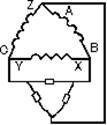 Первый из этих способов называется соединением звездой. При нём все концы фазных обмоток X, Y, Z соединяются в общий узел О (его называют нейтральной или нулевой точкой генератора), а начала служат зажимами для подключения нагрузки. Напряжение между нулевой точкой и началом каждой фазы называют фазным напряжением (