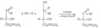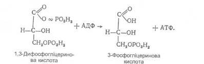 У результаті цієї реакції енергія карбоксил-тіолового макроергічного зв'язку зосереджується в карбоксил-фосфатному макроергічному зв'язку 1,3-дифосфогліцеринової кислоти, потім передається на фосфатну кислоту, унаслідок чого вона стає активованою і здатна вступати в реакцію фосфорилювання АДФ з утворенням АТФ. Такий механізм утворення АТФ носить назву субстратного фосфорилювання,