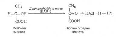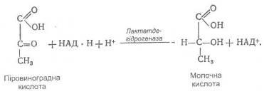 Завершальною реакцією усього процесу гліколізу є відновлення піровиноградної кислоти до молочної під дієюлактатдегідрогенази