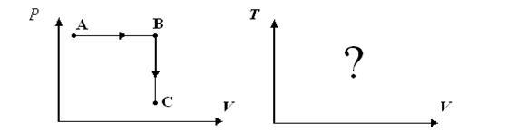 зображений процес зміни стану газу. Відобразіть ці зміни стану газу в осях Т