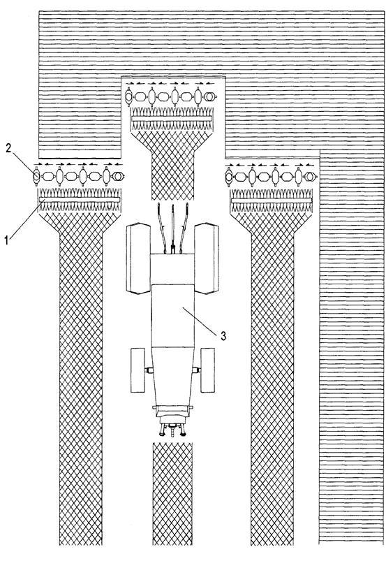 1 – бильное устройство; 2 - режущий брус; 3 – энергосредство