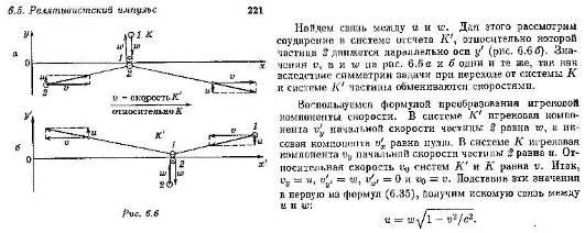 Разница законов движения по осям x «вместе с системой» и y «внутри системы» очевидна. А при том, что, если V=0 (V0 =0), то Vy=V’y’ она по сути означает разницу законов движения по осям x и y. При таком подходе, когда по оси x действуют преобразования А.Эйнштейна, а по оси y – преобразования Галилея, и математические фокусы можно проделывать подобно тому, как И.В. Савельев при выводе формулы для релятивистского импульса рассматривает случай, когда движение имеется только по оси y, выводит на основе уравнения (6.35), справедливого, как бы, в СТО для случая движения «внутри системы» K', некую зависимость, а потом распространяет её на ось x для случая движения «вместе с системой» K', хотя в СТО для этих случаев имеются совершенно разные законы движения (см. ПРИЛОЖЕНИЕ 6).