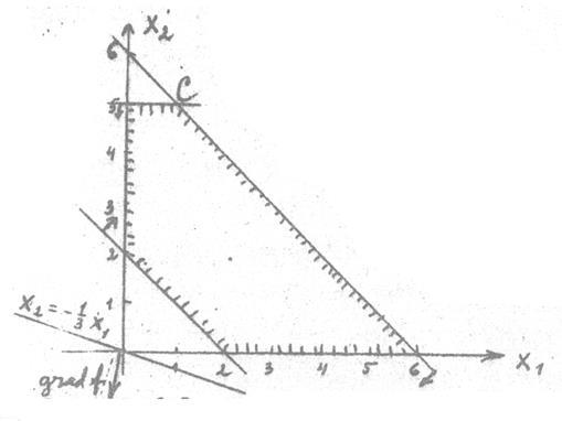 Эти построения будем продолжать до тех пор, пока прямая не пройдет через последнюю вершину многоугольника решений. Эта точка определяет оптимальное значение.