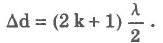 Таким образом, интерферирующие волны будут максимально ослаблять друг друга, если их разность хода равна нечетному числу полуволн.