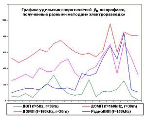 Проводя съемку на двух и более частотах можно судить об изменении электросопротивления с глубиной, вплоть до построения качественных геоэлектрических разрезов.