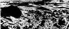 Основная составляющая почвы Марса – кремнезём, содержащий примесь (до 10%) гетитов – гидратов окислов железа. Именно они придают планете красноватый оттенок. Поверхность Марса во многих отношениях напоминает лунный пейзаж (Фото 3). Его огромные территории усеяны кратерами, как метеоритные, так и вулканические. Вулканическая деятельность давно закончилась. Когда вулканическая деятельность была активной, была более плотная атмосфера и образовывалась вода, отчего до сих пор остались руслоподобные образования. Этот период был относительно кратким и недостаточным для образования жизни. Поэтому жизнь на марсе не обнаружена, в том числе и с помощью станций «Викинг».По всей видимости её там никогда и не было.