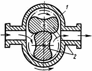 К достоинствам нагнетателей данного вида следует отнести компактность, простоту конструкции, отсутствие клапанов, возможность использования для привода высокоскоростных электродвигателей, независимость подачи от противодавления сети, реверсивность, возможность получения высоких давлений (5 МПа для шесте-ренного насоса, 0,5 МПа для насоса "восьмерочного" типа). Основные недостатки состоят в быстром износе рабочих органов, невысокой подаче и сравнительно низком КПД (до 0,75%).