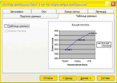 - Окрываем вкладку "Ряд", имя ряда - кликаем на ячейку "Будущая стоимость", подписи оси ох - выделяем названия банков