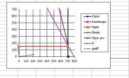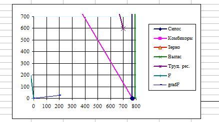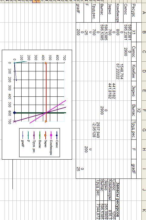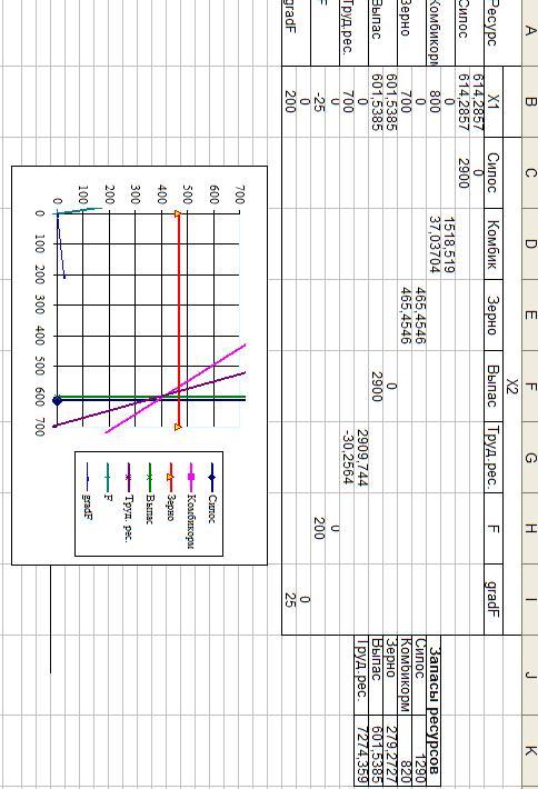 находятся значения, характеризующие запасы ресурсов, то при каждом изменении запасов ресурсов, мы вводим в эти ячейки обновленные данные и получаем решение графическим методом.