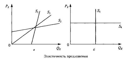 ) — ситуация обратная первой. Здесь незначительное изменение цены товара вызывает значительное изменение объема предложения, т. е. речь идет об эластичном предложении. Третий, промежуточный, случай (линия S3