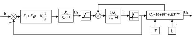 Рис. 3 Структурная схема системы регулирования тока с учетом характеристик дуги