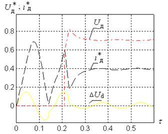 Для получения обобщающих закономерностей, применимых для класса дуговых печей различной мощности, в работе предложено использовать систему относительных величин, в которой за базовое время принято частота питающей сети, за базовое напряжение номинальное значение выпрямленного напряжения, а за базовый ток – номинальный ток печи.