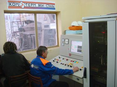 Система построена в соответствии с двухуровневой иерархической структурой. Верхний уровень иерархии (рис.11,б) включает в себя промышленный компьютер с системой визуализации хода процесса и состояния агрегатов печи. Нижний уровень образован универсальным программируемым контроллером и исполнительными элементами, управляющими током печи, перемещением электрода и вспомогательными механизмами, определяющими ход технологического процесса. На рис.11,а показан общий вид реализованной системы управления печью.