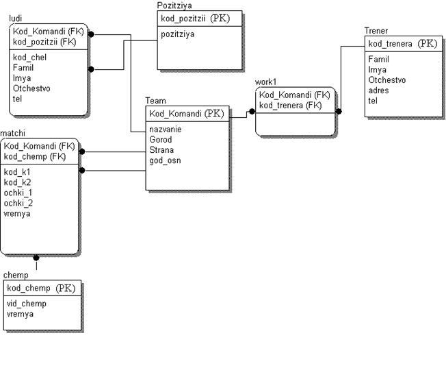 Сущность – это класс однотипных объектов. Процесс деятельности фирмы идентифицирует такие сущности: Команда, Тренер, Члены команды, Матчи, Чемпионат.