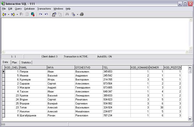 select famil, imya, otchestvo from ludi where kod_komandi=1;