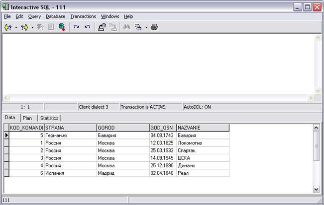 CREATE TABLE "TEAM" ("KOD_KOMANDI" INTEGER NOT NULL, "STRANA" VARCHAR(20), "GOROD" VARCHAR(20), "GOD_OSN" DATE, "NAZVANIE" VARCHAR(20), PRIMARY KEY ("KOD_KOMANDI"));