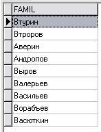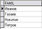 select famil from ludi where famil >='А' and famil < 'Г';