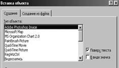 ¨ В Microsoft Word выберите команду "Объект" в пункте меню "Вставка", а затем, в появившемся окне - вкладку "Создание".